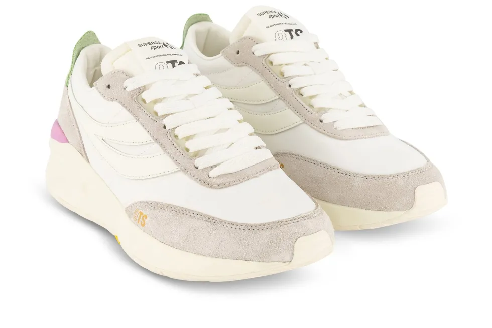 The Superga 4089 Sneaker with White Pink and Vibrant Yellow.