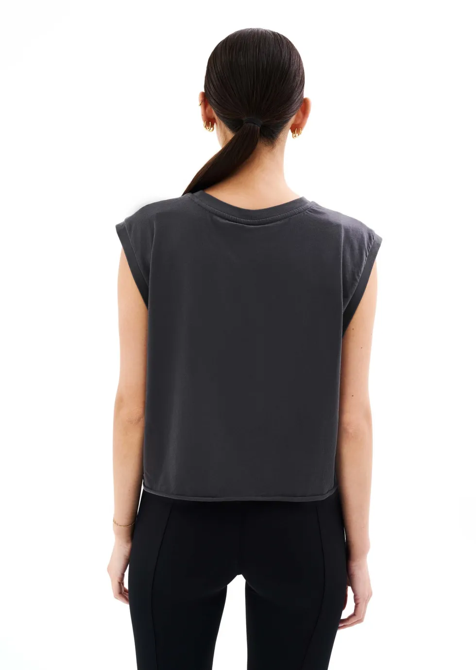 TheSolrad Tank in Dark Shadow by P.E Nation,designed to be worn from workout to water. A lightweight cropped T-shirt featuring buttery soft organic cotton jersey, take your all day looks to the next level with the Solrad Tank.
