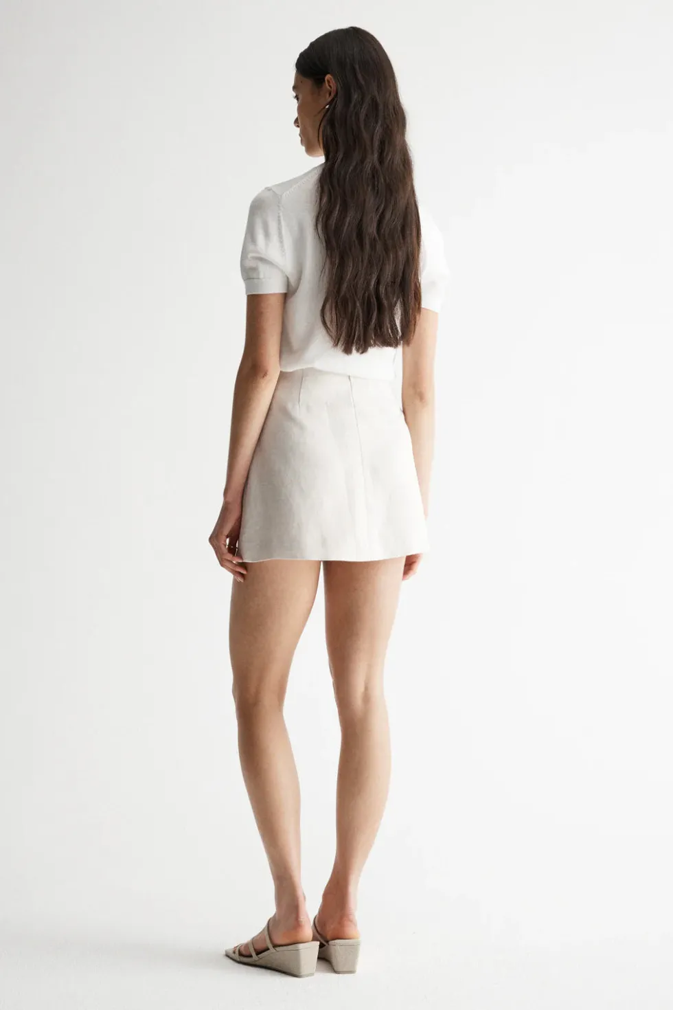Combining sleek lines with a classic silhouette, the Floretta Skirt helps to build your capsule wardrobe’s refined sensibilities. Made of a linen blend fabric, the Floretta Skirt feels luxuriously soft and lightweight, remaining breathable for the warmer weather. This mini skirt sits high on the waist and features a wrap front, faux pockets, and is cut to a classic a-line silhouette. The centre back zip provides a secure fit.