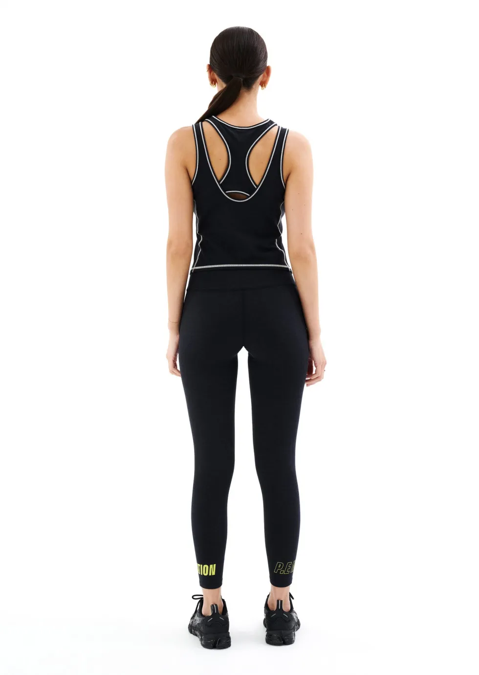 TheOrbital Tank in Charcoal Marlby P.E Nation,designed to be worn from workout to water. Designed for low-impact workouts, the Orbital is the best tank top for Pilates, yoga and slow-paced recovery workouts.