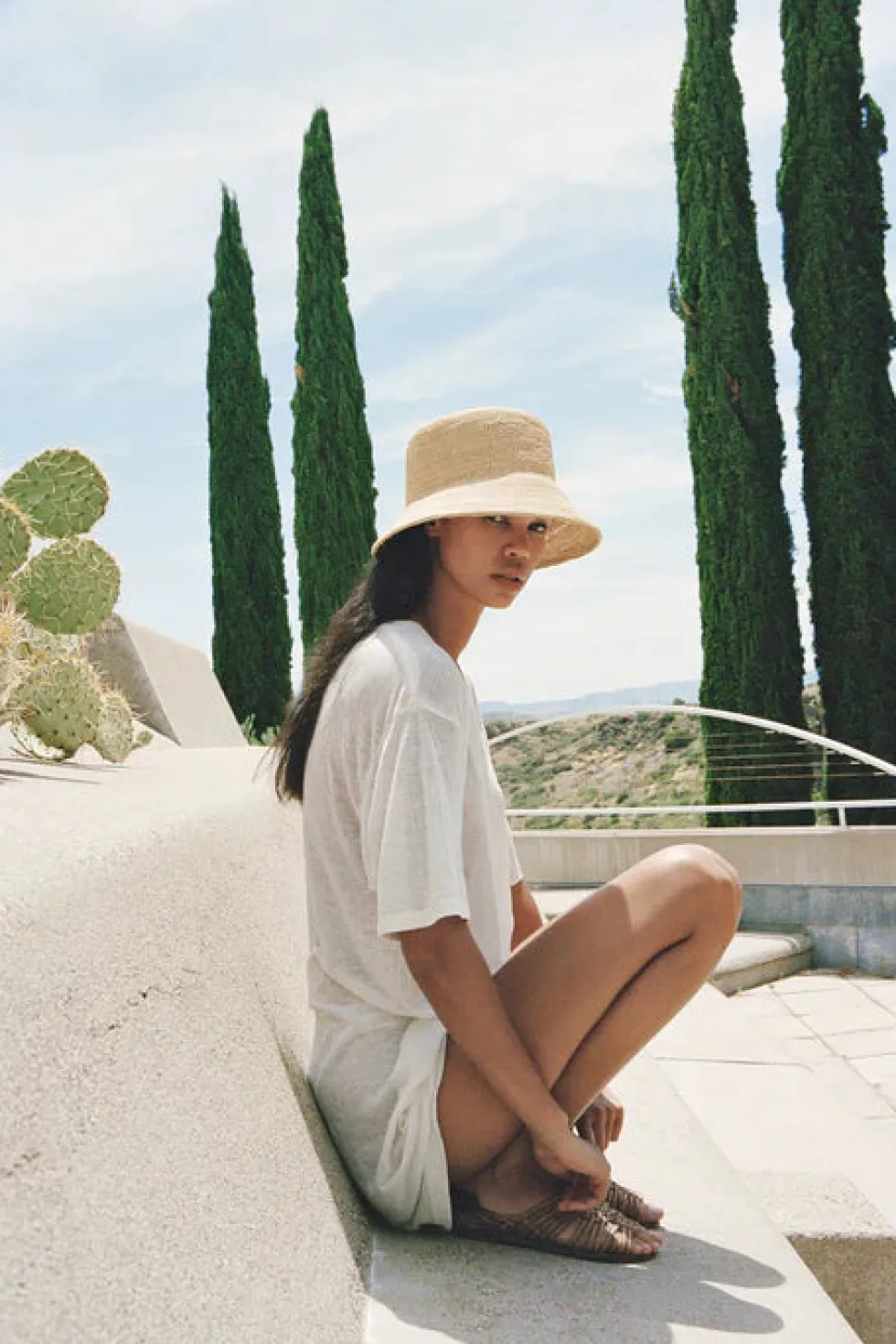This latest woven raffia straw bucket hat takes you from day to night, from poolside to beachside, from festival to grassy hills and beyond. A true companion worthy of memories new and old.