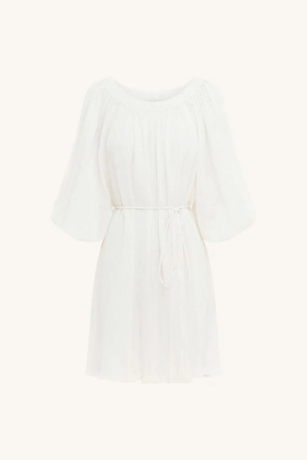 The Avah Mini Dress presents a relaxed silhouette, embodying a lightweight grace that renders it a versatile and sophisticated addition to your wardrobe. Its elasticated neckline allows for on or off-the-shoulder styling, while the statement balloon sleeves allow you to customise the sleeve length. Complete with an optional waist tie, the Avah Mini Dress is designed to accentuate your figure as desired.