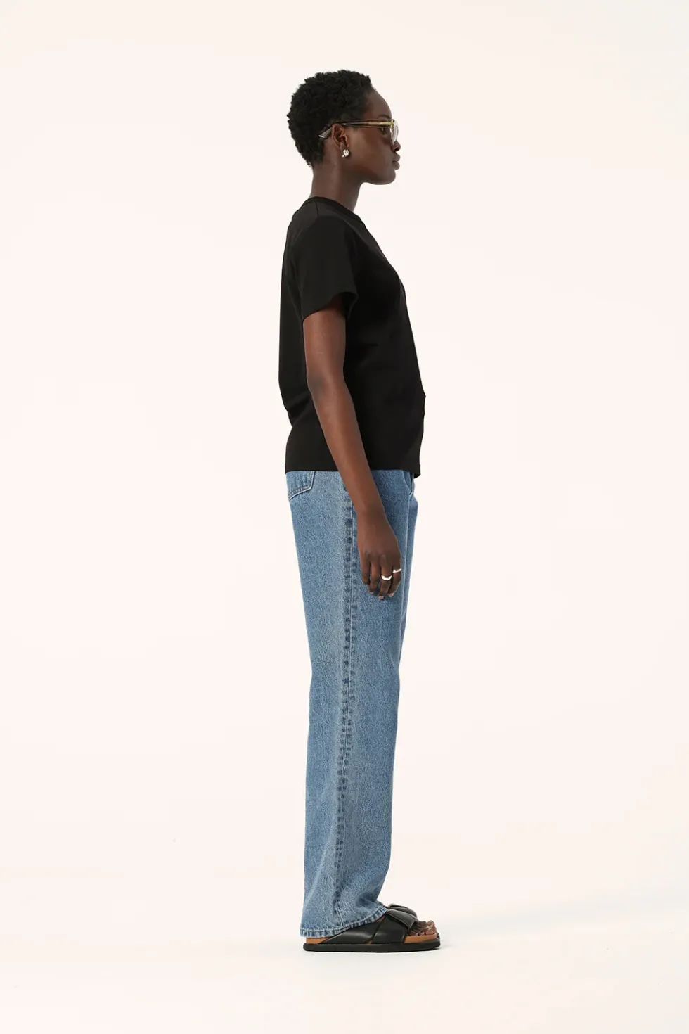 The Zoe Tee in black is a true wardrobe staple. Crafted from our soft organic cotton this t-shirt is a sleek and comfortable option for easy casual outfitting in any season. With a classic short sleeve design, crew neckline, and slightly oversized, boxy fit, the Zoe Tee can be styled with all skirts, jeans and suiting options from work to weekend.