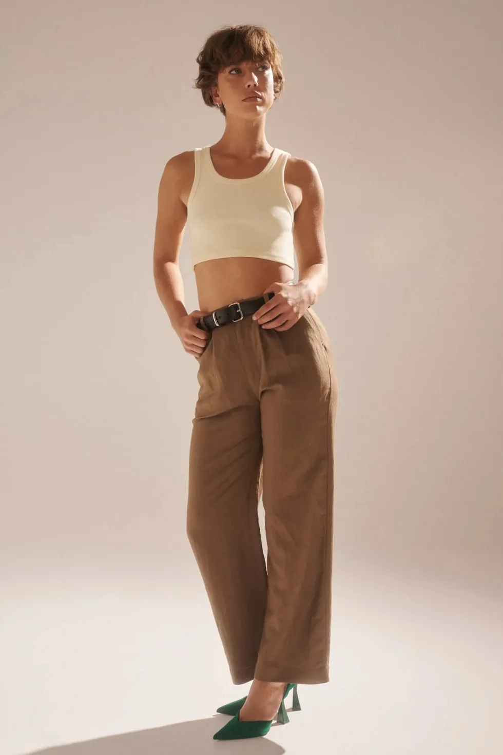 The Chloe Pleat Linen Pant in Tobacco by Rolla’s: