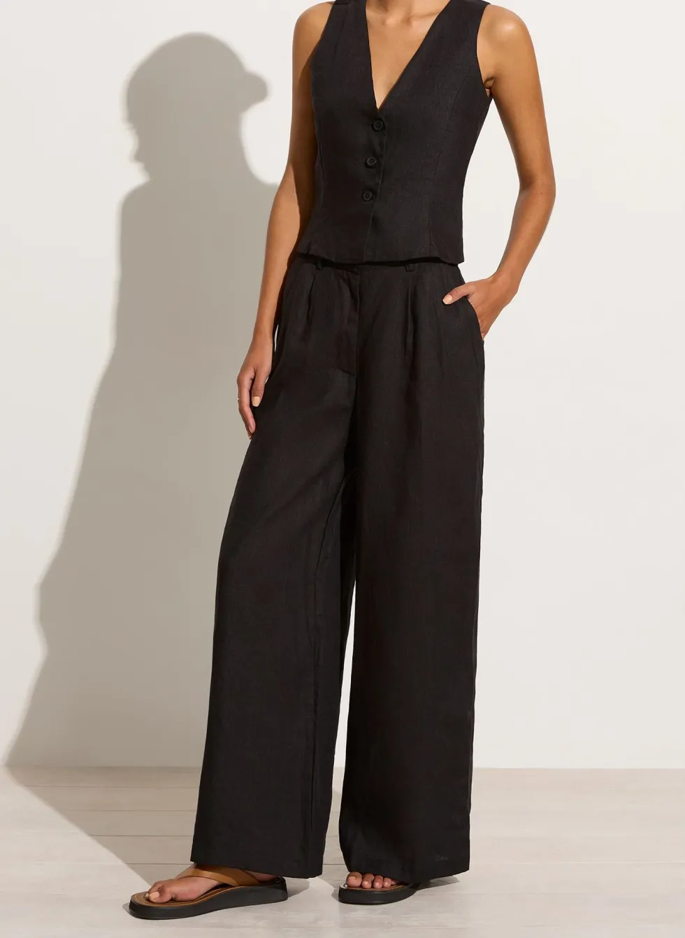 A summer linen essential lies in theupdatedCirca Pant inBlack. These high-waisted wide leg pants are designed with a fitted waistband, front tuck details and side pockets. Made with the environment in mind, the Circa is crafted using certified linen boasting complete traceability and socially responsible standards.
