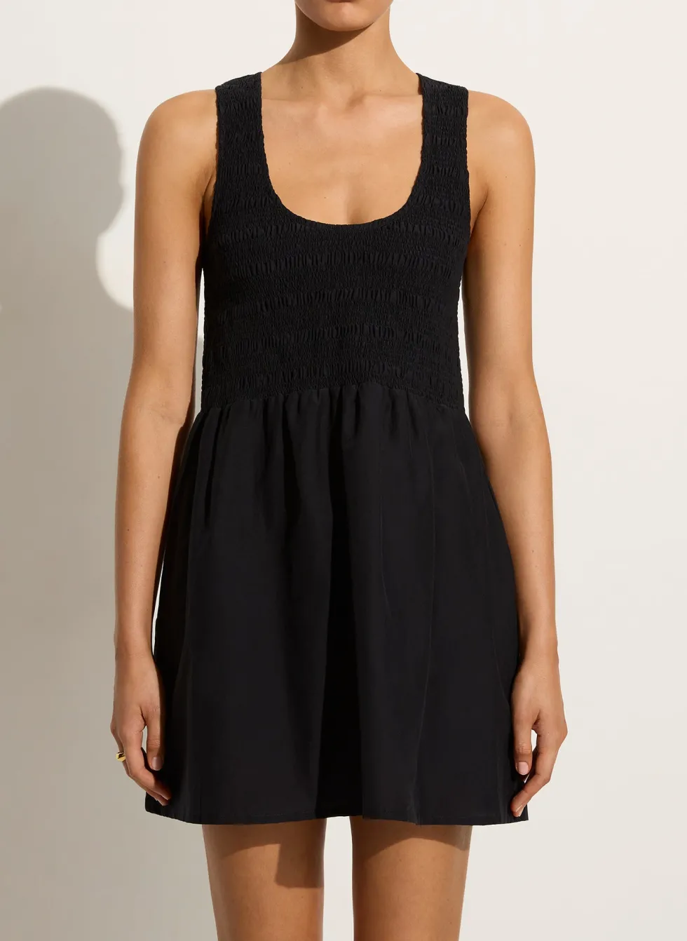 The Epoca Dress by Faithfull The Brand is a mini dress dream. Lightweight and comfortable, the Epoca is fully lined. It features a scoop neckline, pockets and shirred bodice. The a-line skirt creates a beautiful feminine shape through the design.