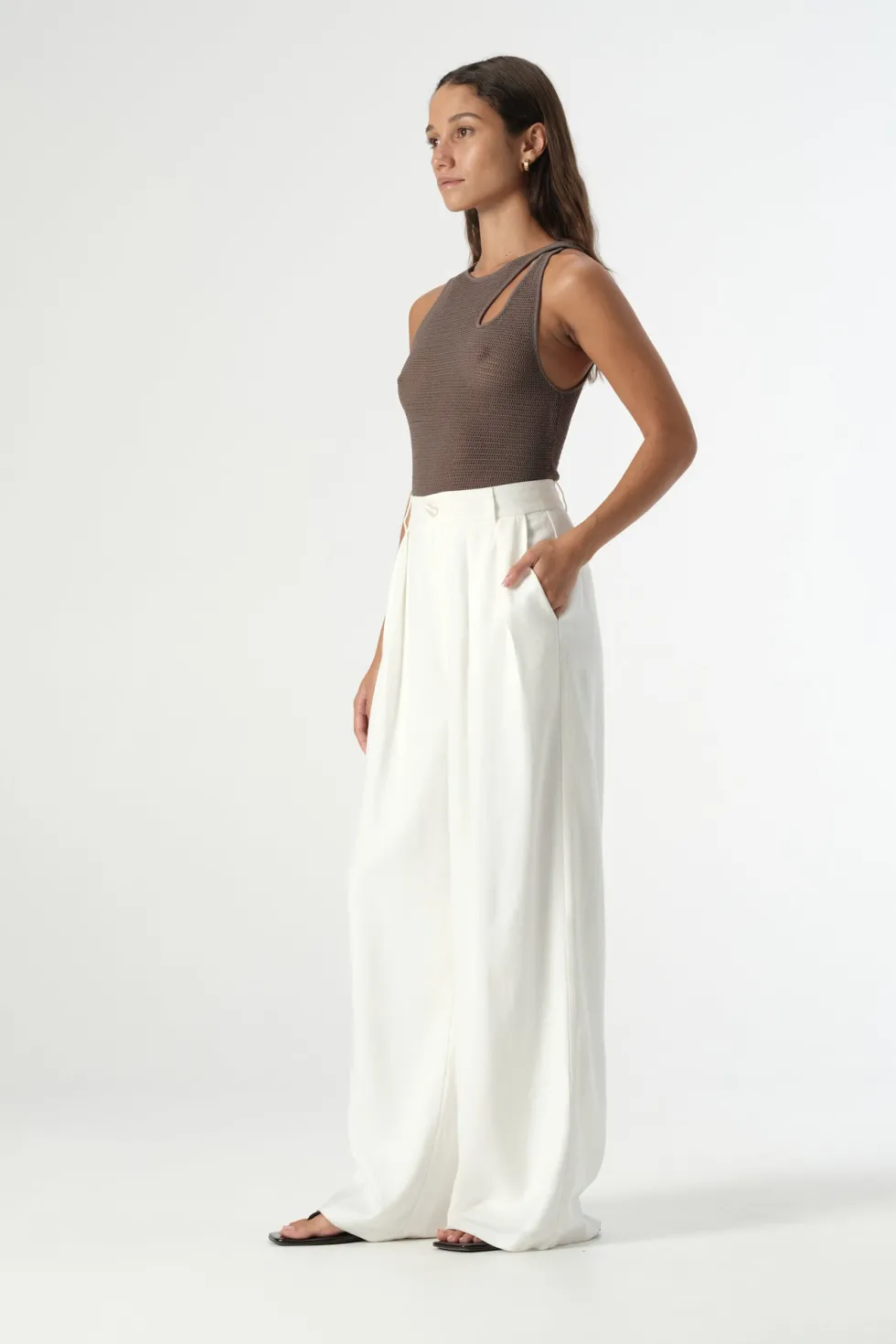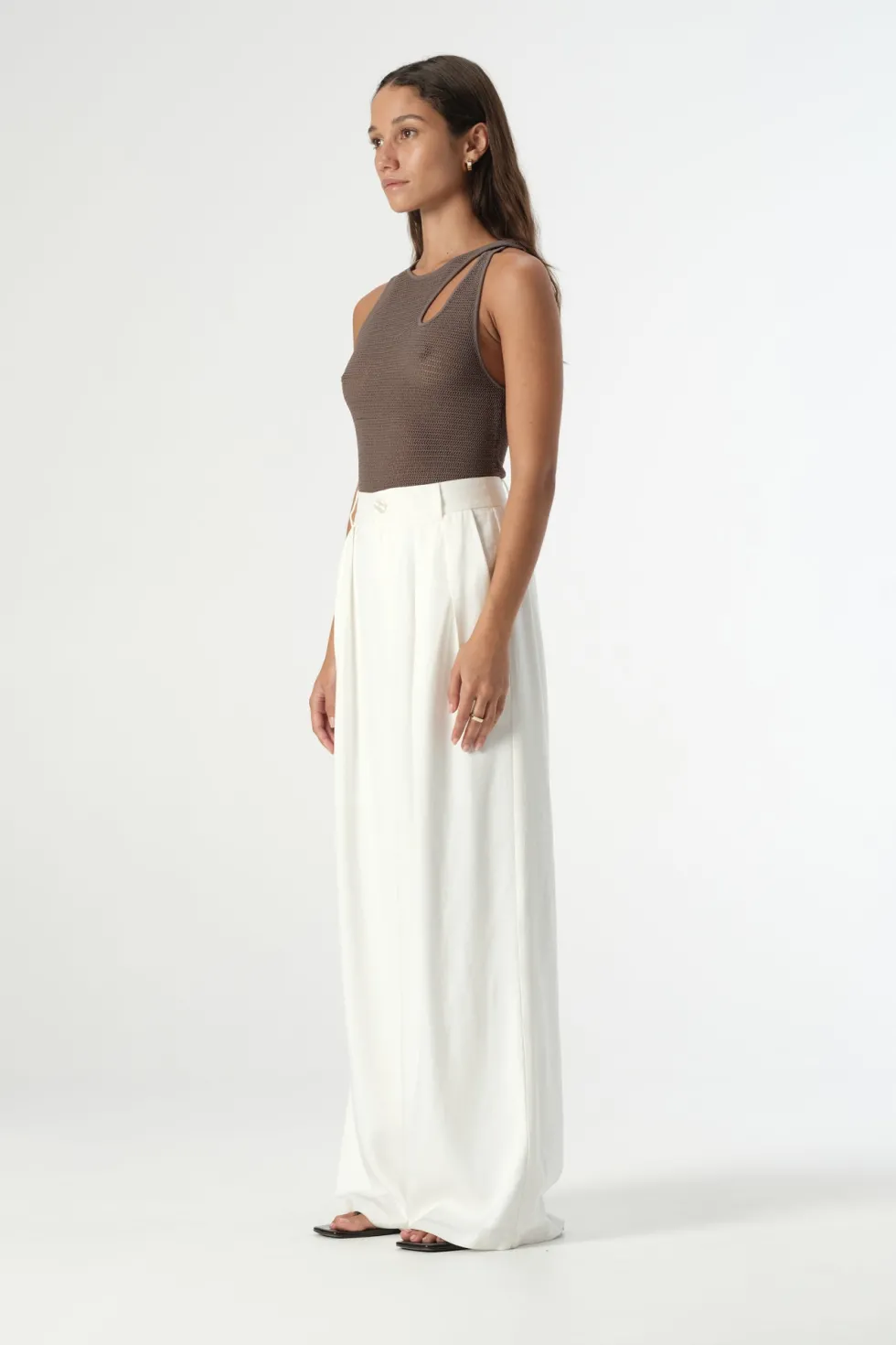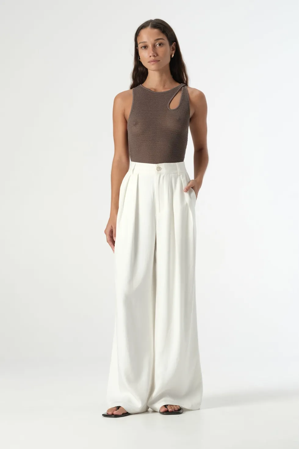 Elevating knitwear for the warmer weather, the Ivy Top combines a luxurious knit construction with a sleek, contemporary design for day to night outfitting. A soft and stretchy semi-sheer sleeveless tank, the Ivy Top features an asymmetric neckline with cut out feature at the shoulder and a fitted silhouette. Style with tailored essentials.