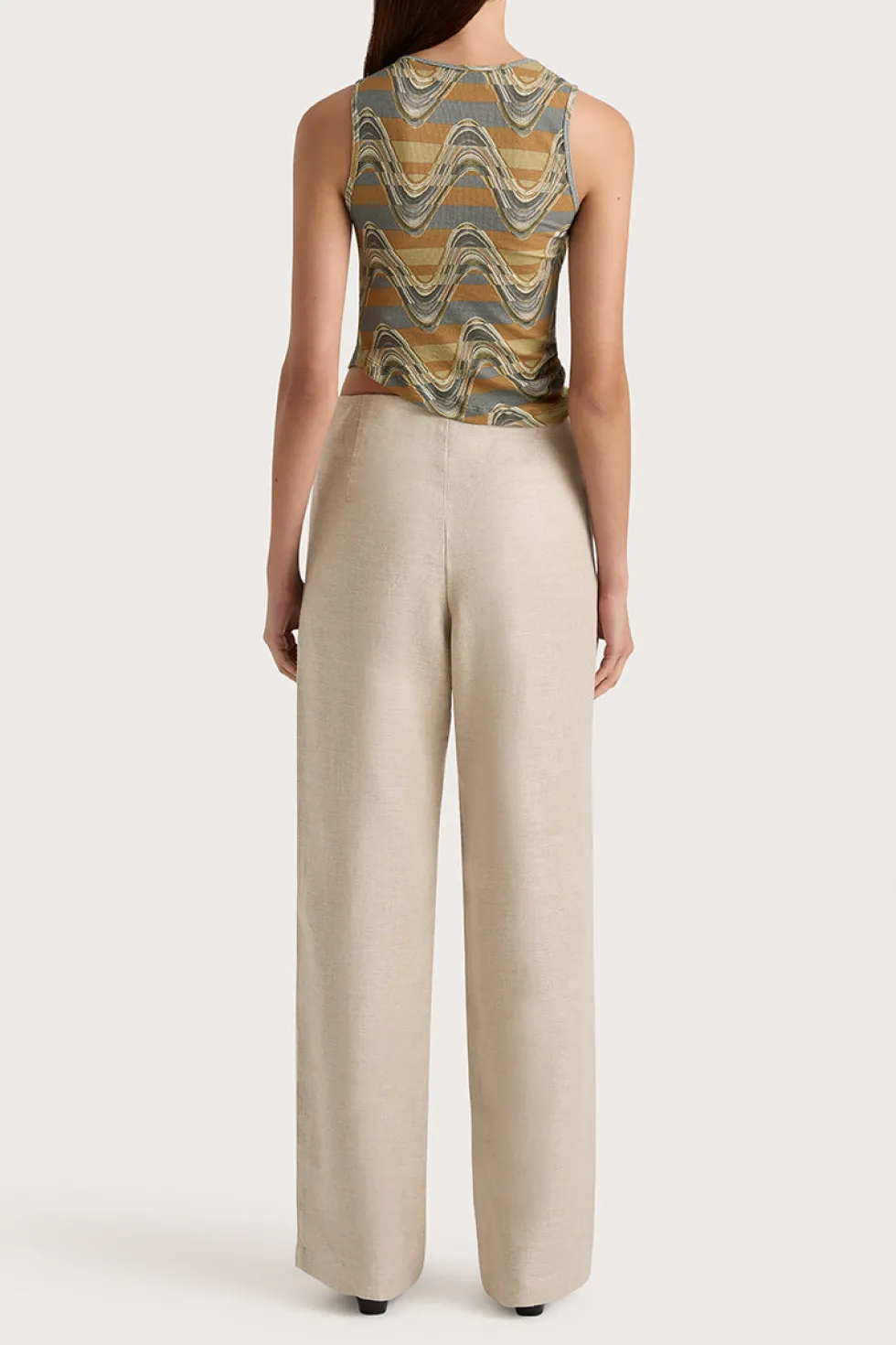 A fitted cotton jersey rib singlet with diagonal tuck detailing and an asymmetrical hemline, designed to drape across the body. Elastane is woven through the fabric for comfort and additional stretch.