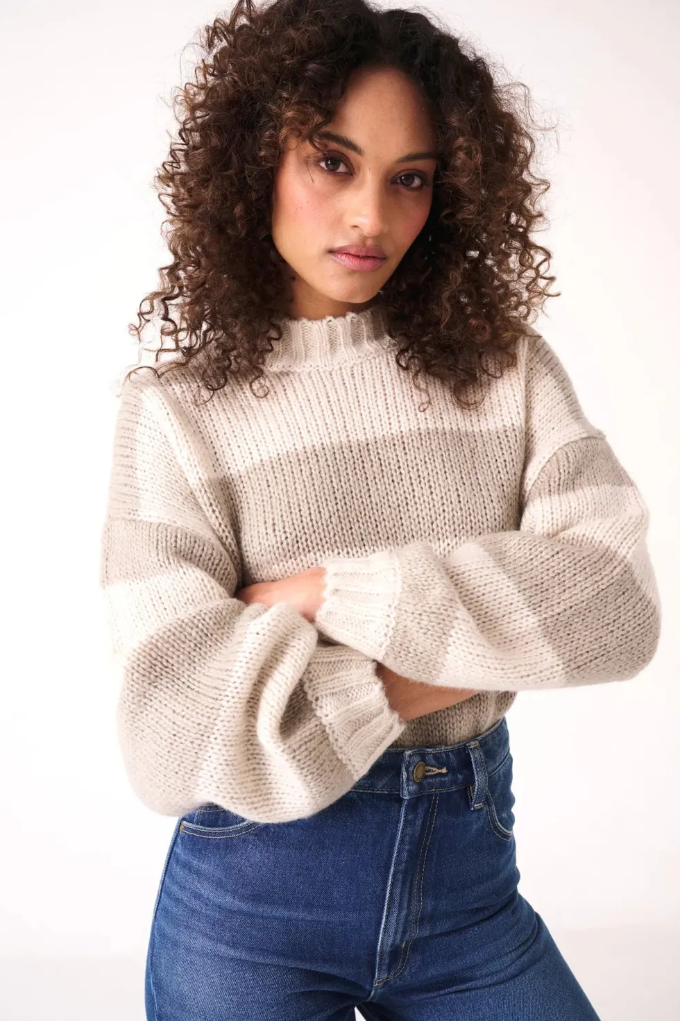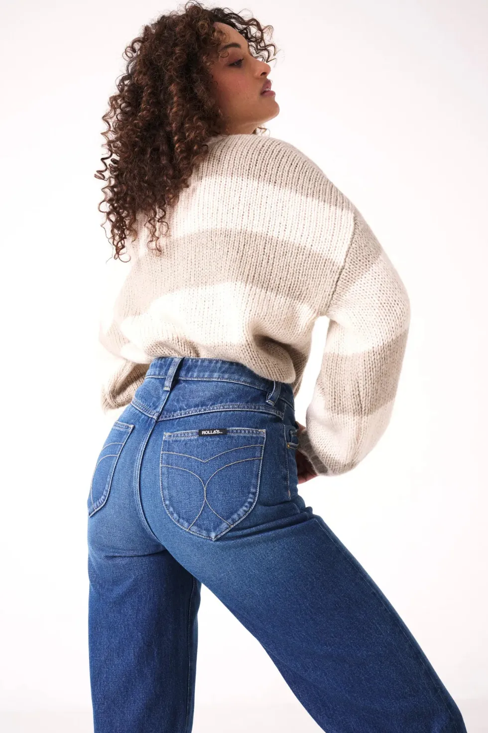The Weekend Knit by Rolla’s Jeans is an oversized Chunky knit with a crew neckline featuring Rolla’s Seasonal Stripe Khaki. Paired back effortlessly with straight leg jeans and sneakers, this knit is one you won’t want to miss this season.