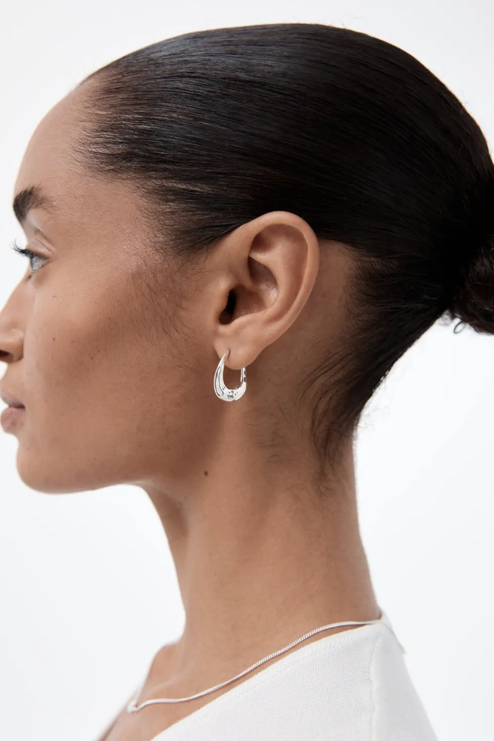 20mm rounded hoop. Lightweight with an unnoticed spring hinge clasp. Subtle smoothed organic texture.