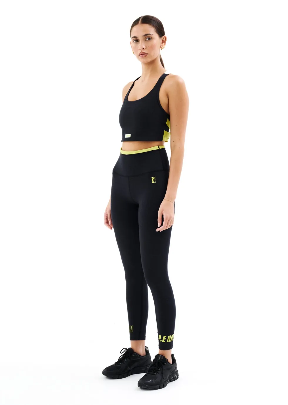 Folded waistband provides support minus any restriction, with contrast P.E Nation logos providing contrast fluro pops designed to stand out.
