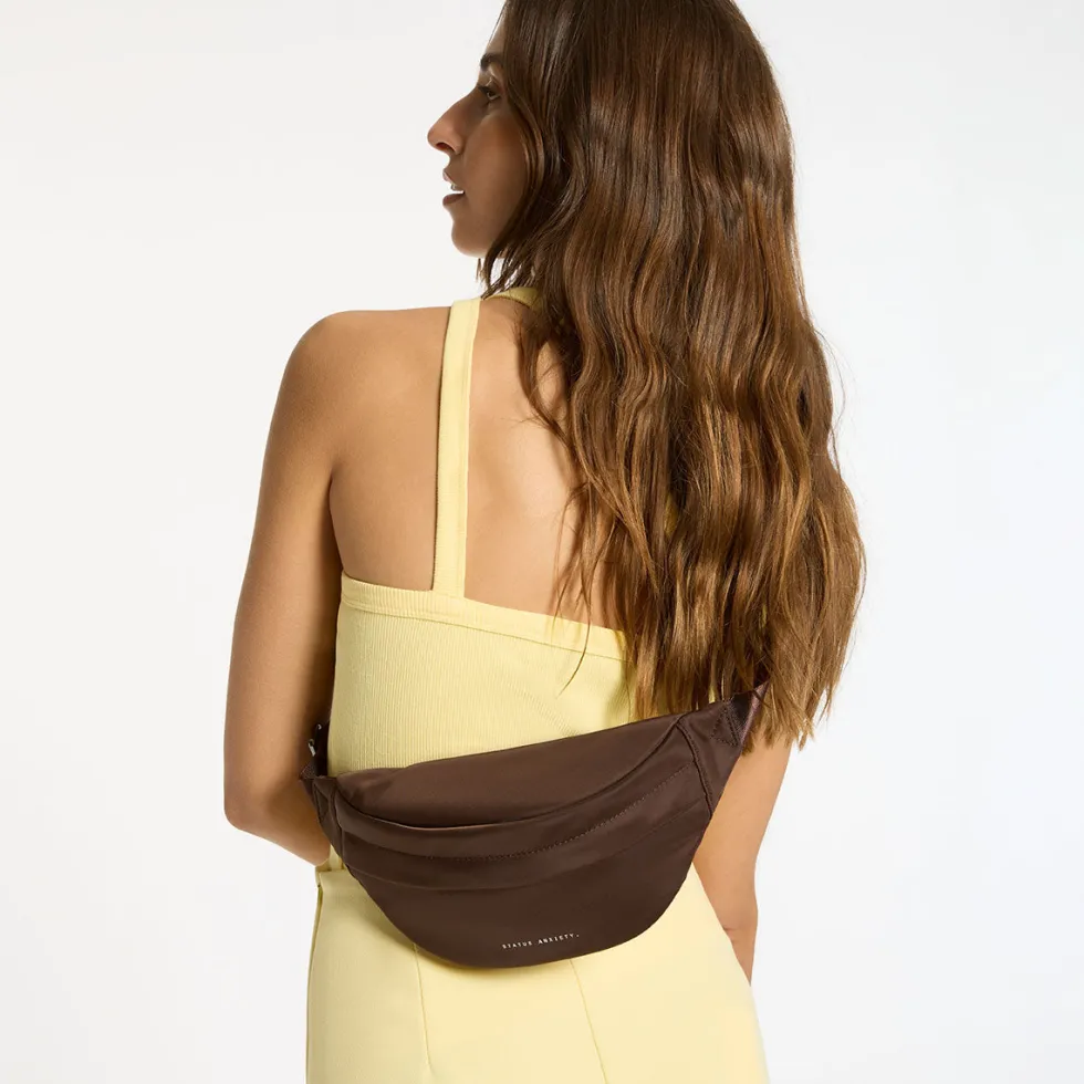 Designed to hug tight to your body, the Piper bum bag is made from premium reinforced recycled polyester and is the perfect ‘go-to’ bag for everyday. Features include, a custom status anxiety lining, recycled webbed strap and a zipper close on front and back.