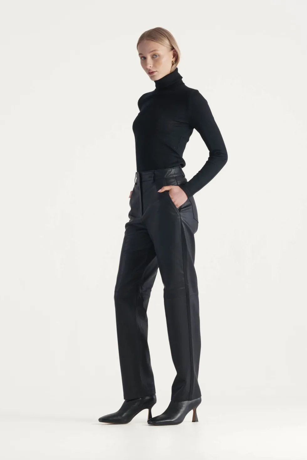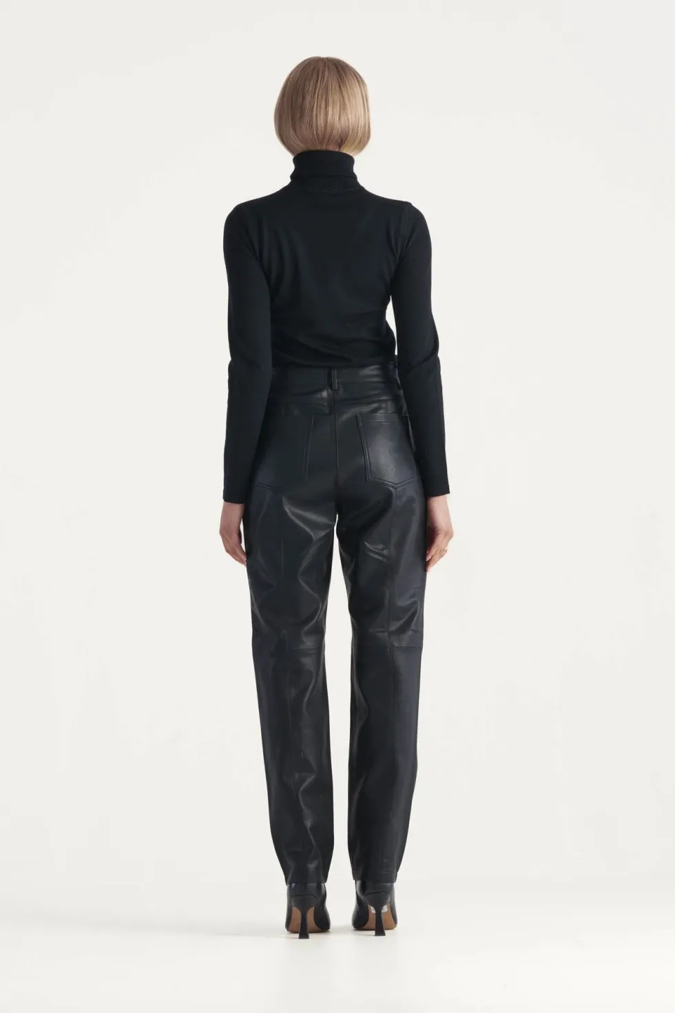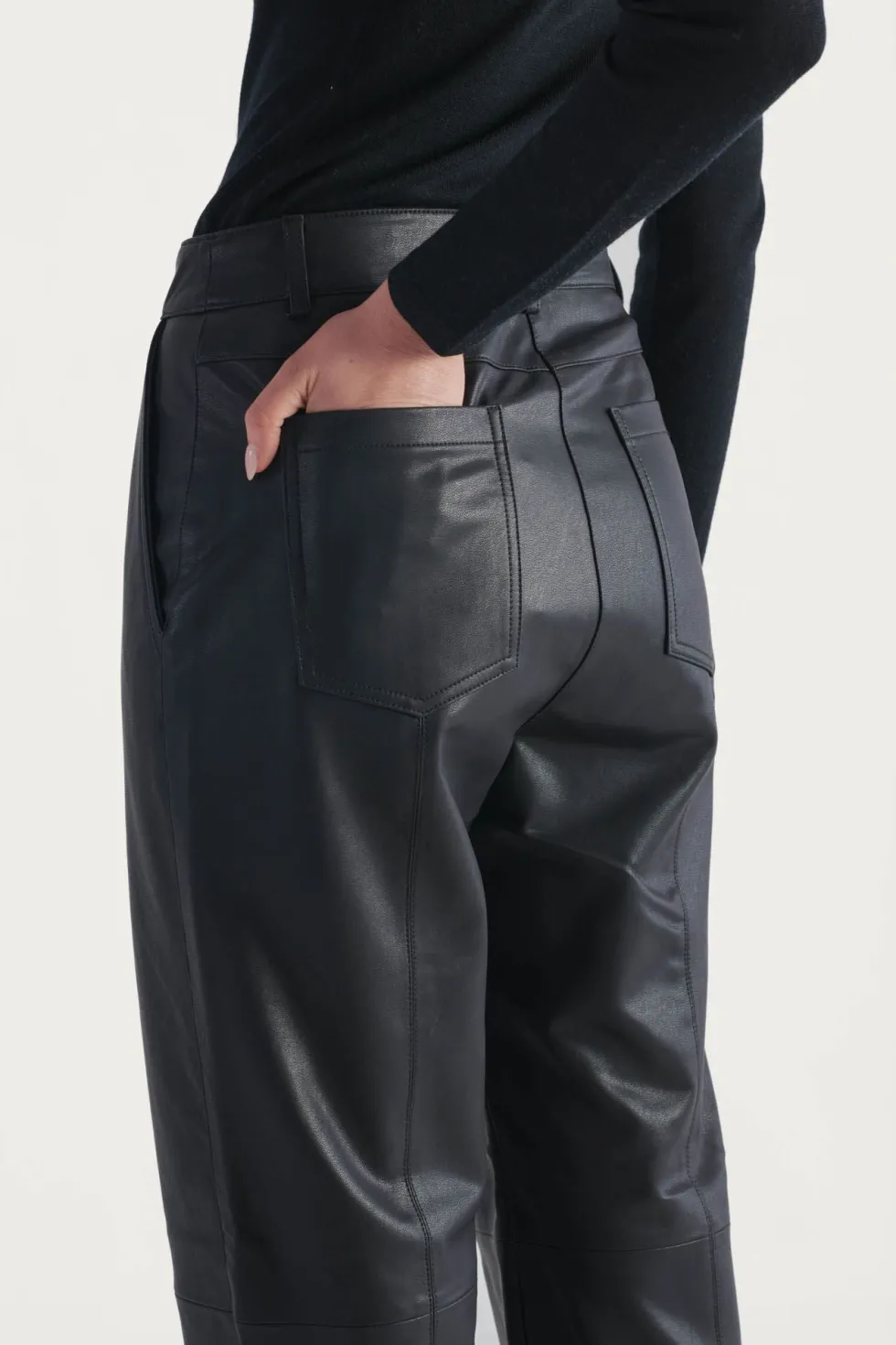 The Bri Pant from Elka Collective a timeless capsule piece featuring a high waist, back pockets and a modern knee and back seam detail. Crafted from a vegan-leather this luxurious soft-feel pant will be on high rotation year in, year out.