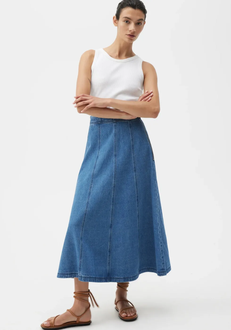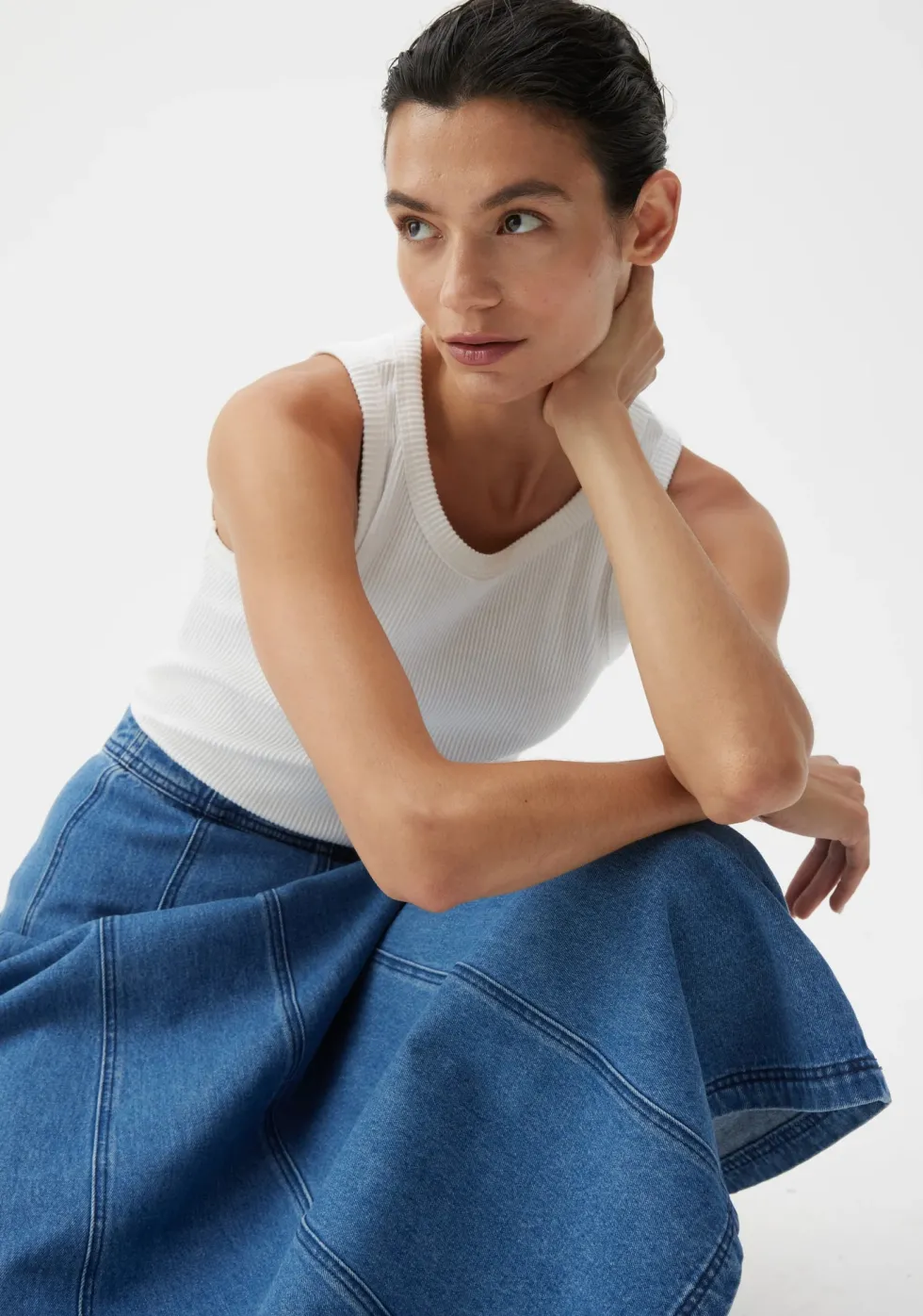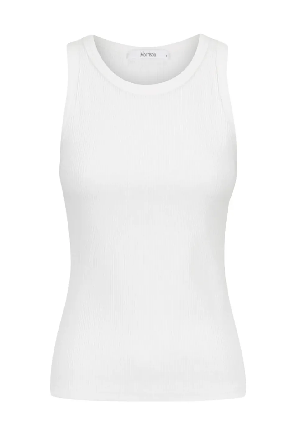 Cassie Tank in White by Morrison is a stretch cotton rib classic tank. Featuring a crew neckline and straight hem, this tank is bind at the neck & armhole and fitted through the body.
