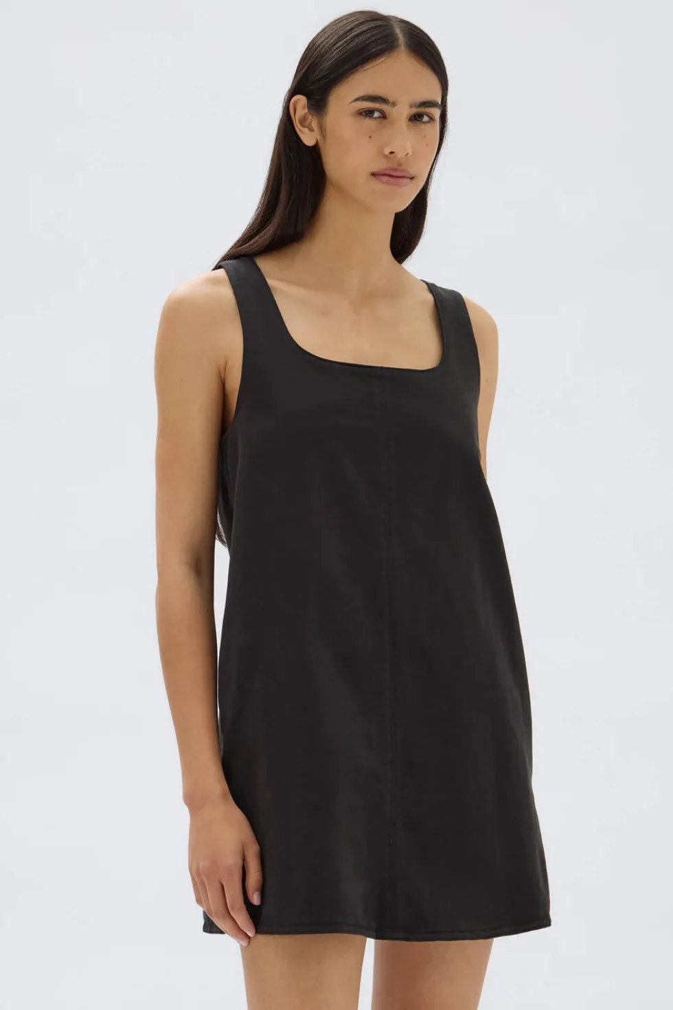 The Zoey Twill Mini Dress by Assembly Label is a contemporary, relaxed style featuring a square neck and made from a rigid fabrication for added structure. The Zoey features decorative edge stitching at the hem and side seam, centre back metal zipping, side seam pockets and an internal zipper guard.