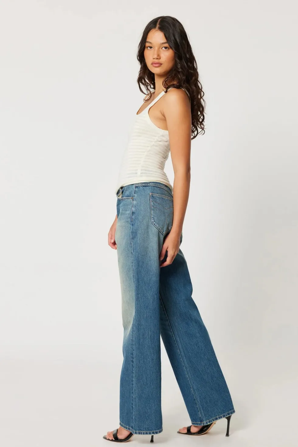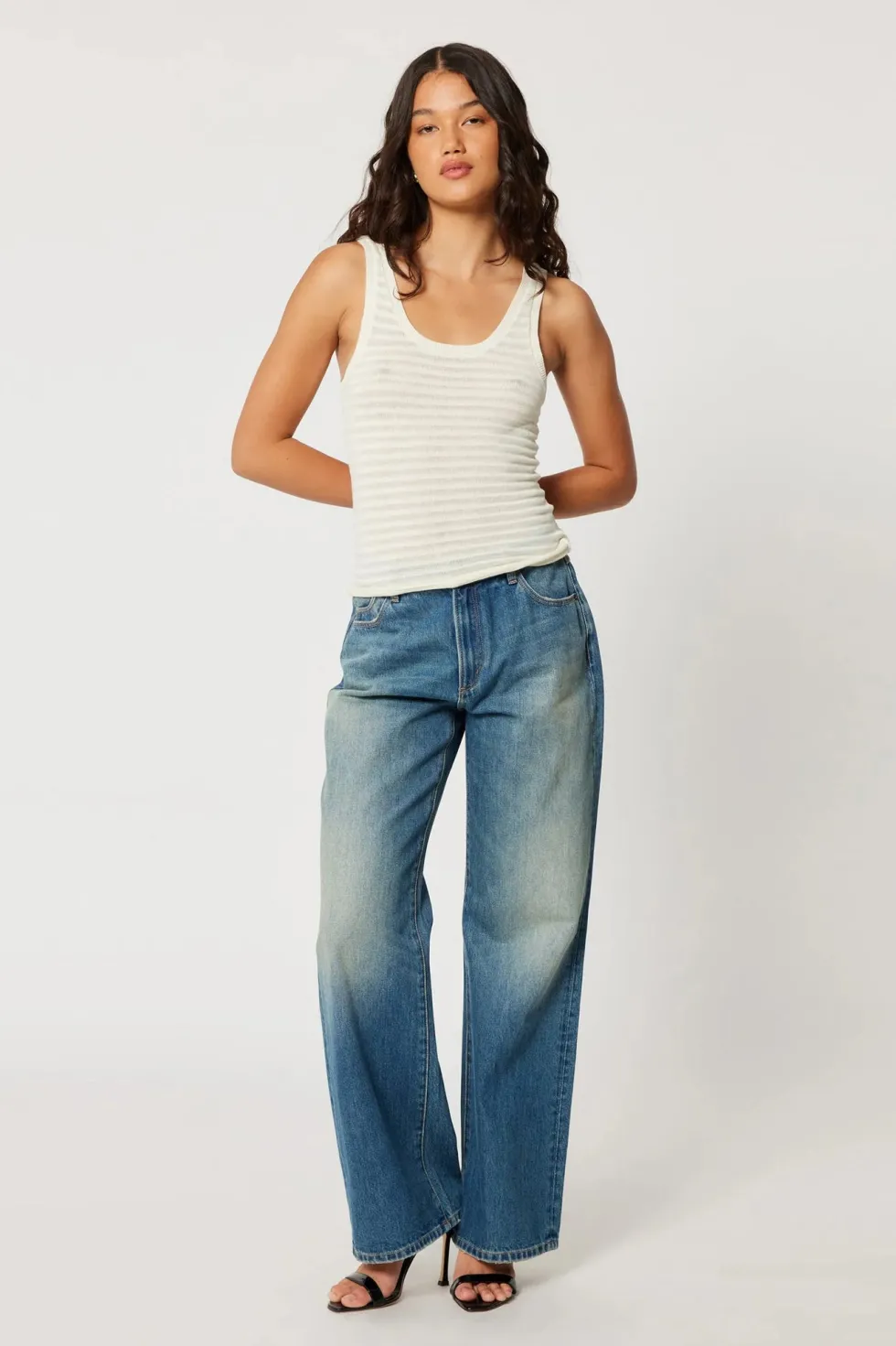 A vintage inspired, slim fit rib tank. Crafted with a soft cotton yarn, this slightly sheer stripe knit features a low s…