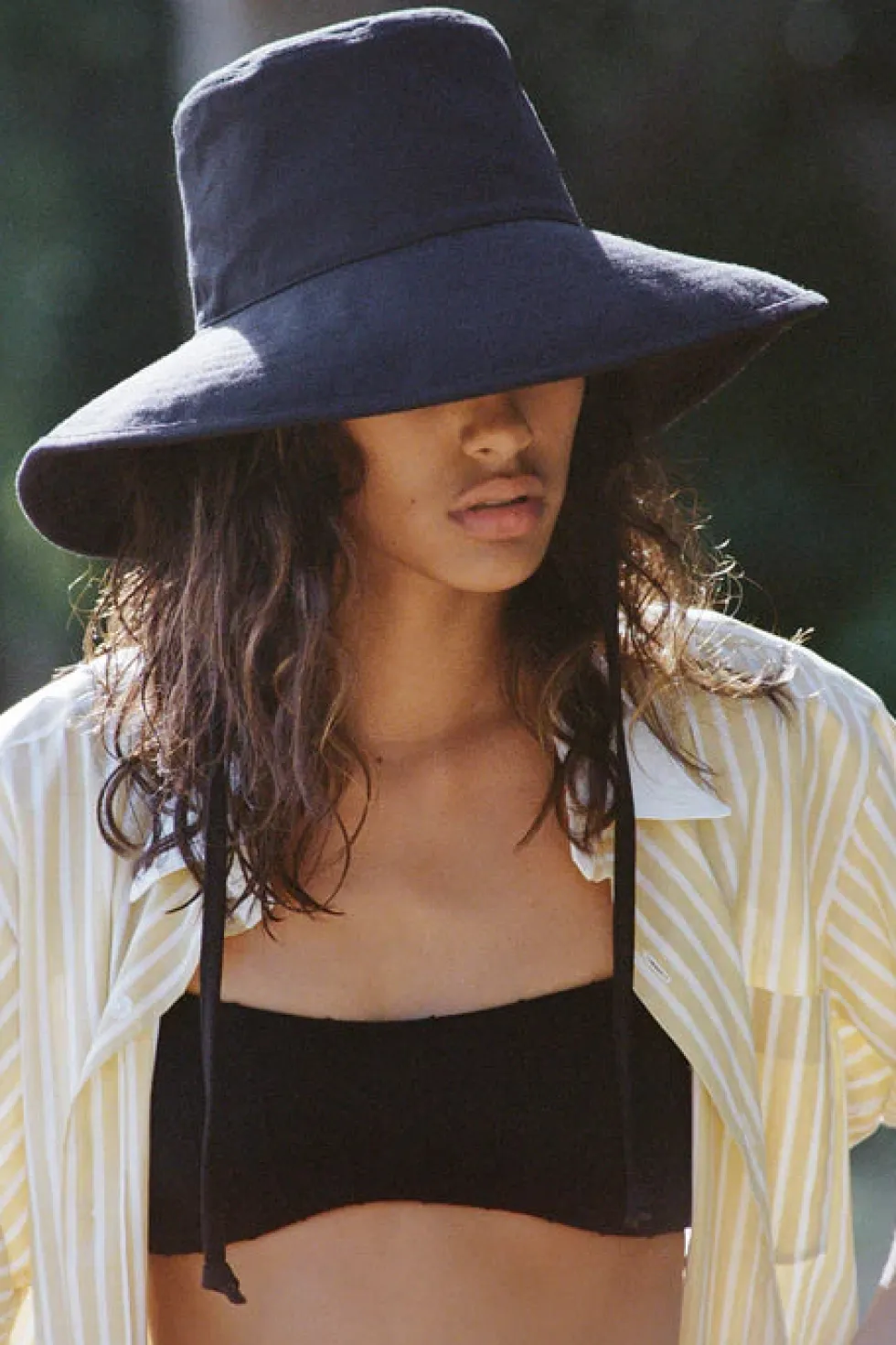 Made from 100% cotton canvas in a classic black, our new wide-brimmed holiday bucket is finished with a simple and secure necktie, ensuring this hat goes everywhere you do.
