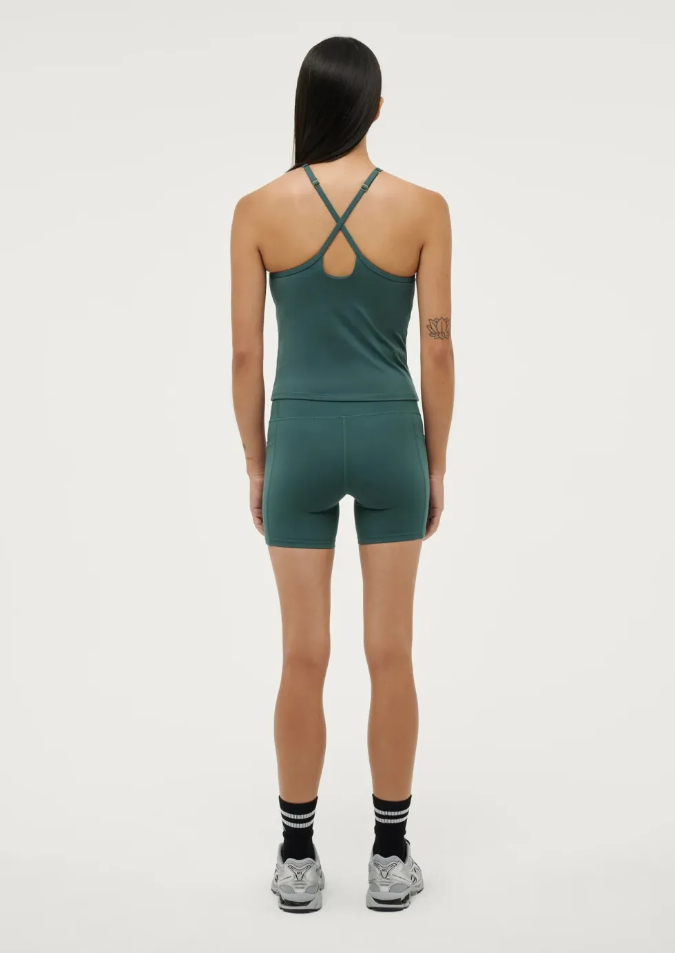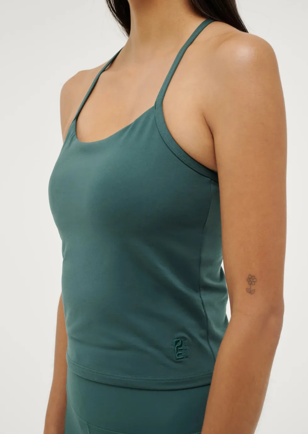 TheFormation Tank in Botanical Garden, timeless staples in signature fabrications you’ll never want to take off. This fitted active tank features a cross-strap detail on the back, thin adjustable straps with gold metal detailing, and an internal shelf bra with removable cups for customisable support. Crafted from P.E Nation’s signature STUDIO SOFT fabrication, it offers unparalleled comfort and flexibility.
