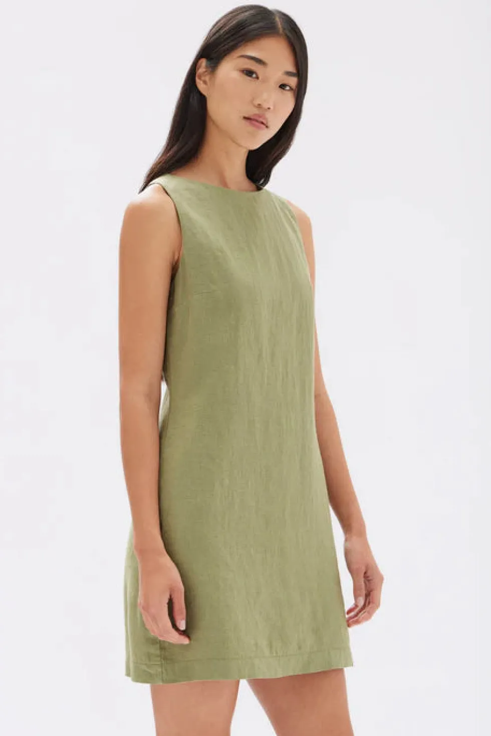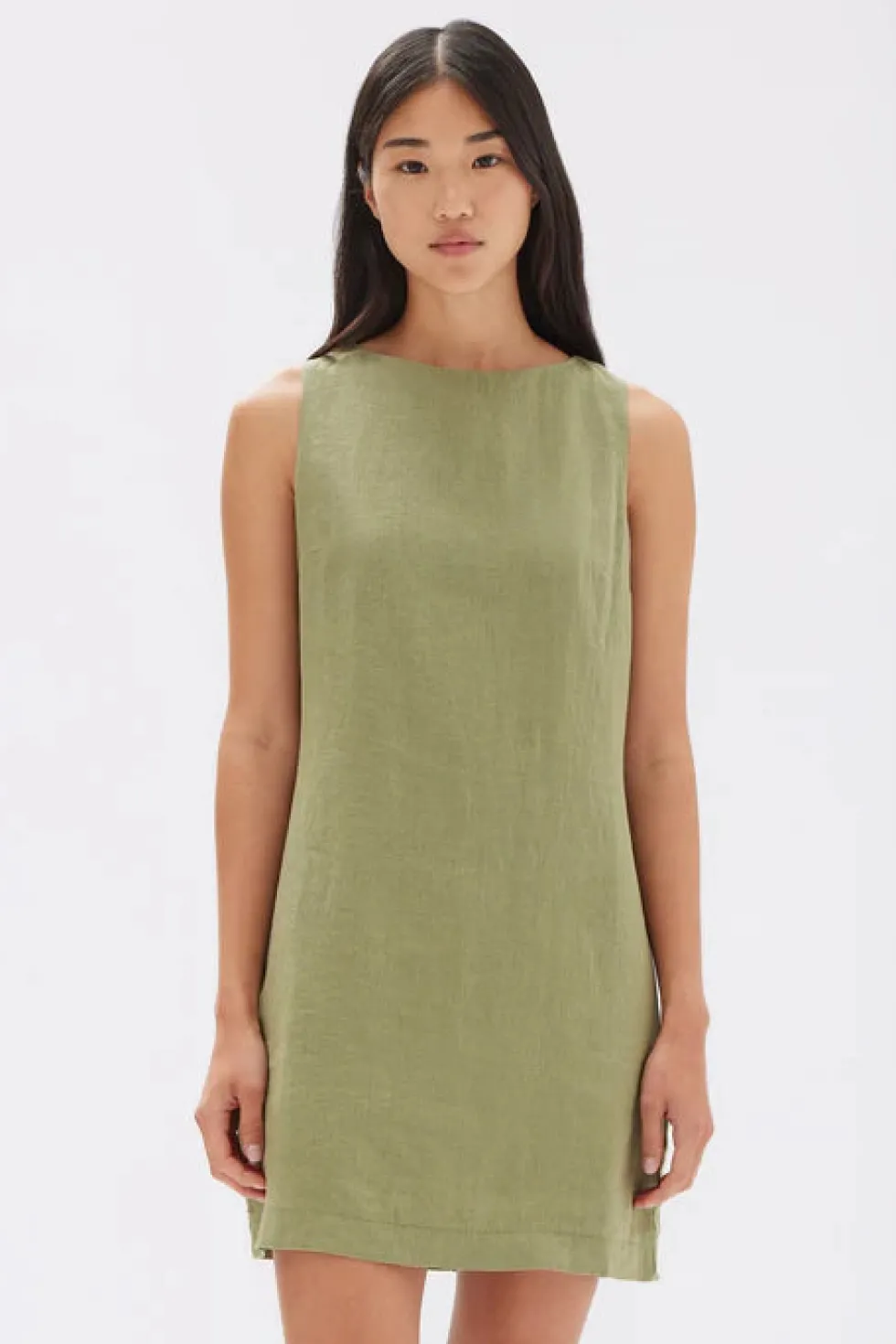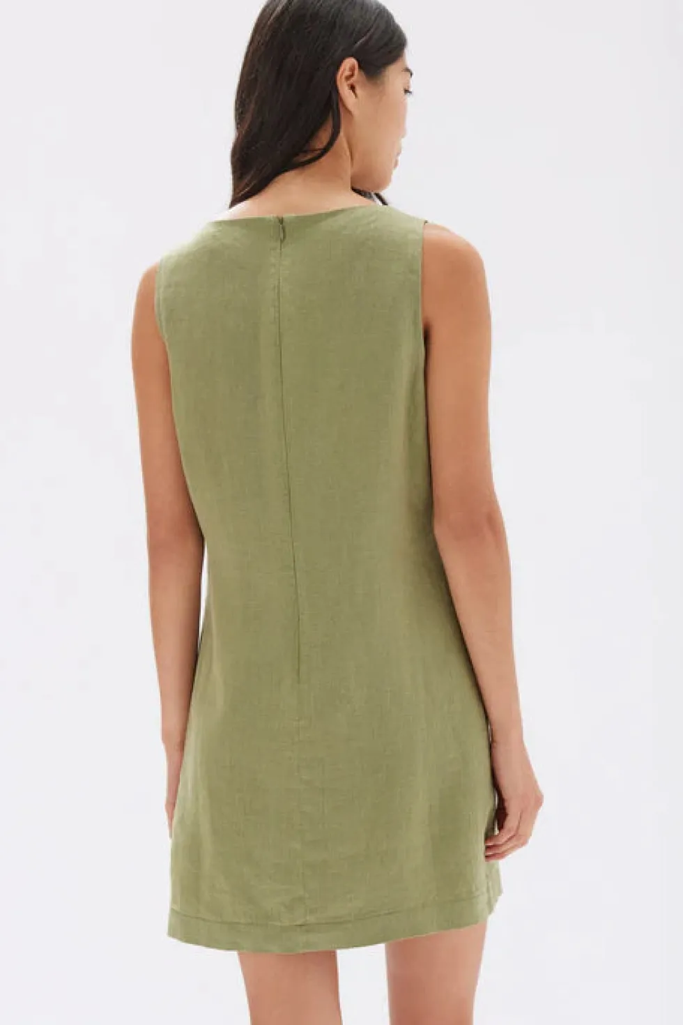 The Nadine is a linen mini dress features a boat neck shape and finished with an invisible zipper fastening. Fully lined.