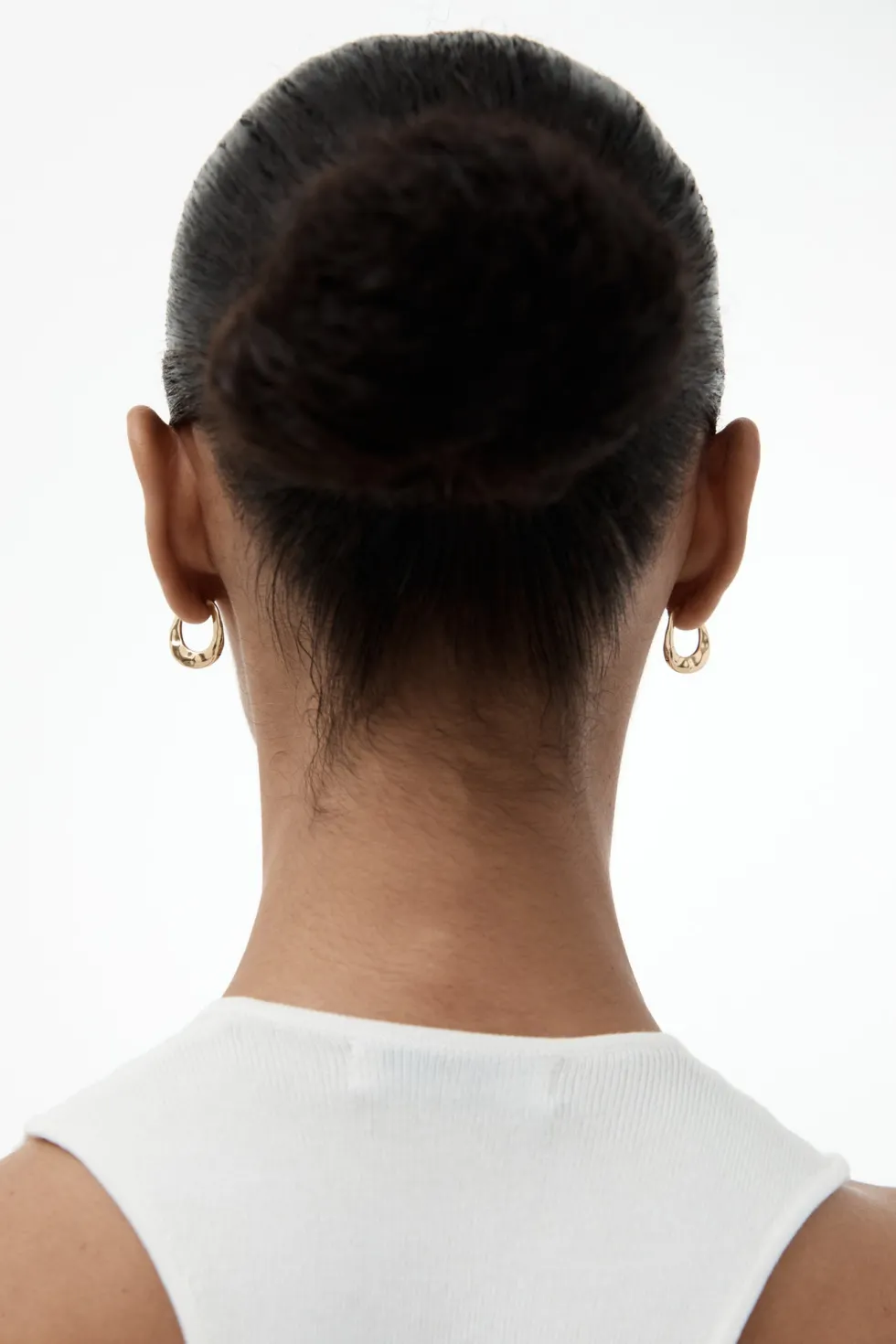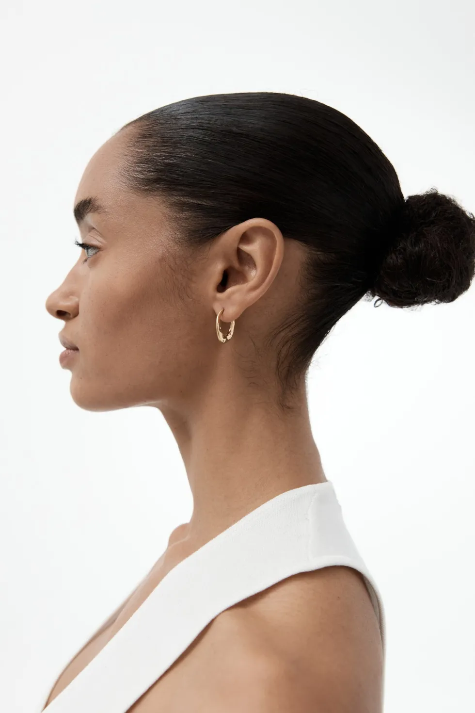 Recycled 14k Vermeil.20mm rounded hoop. Lightweight with an unnoticed spring hinge clasp. Subtle smoothed organic textur…