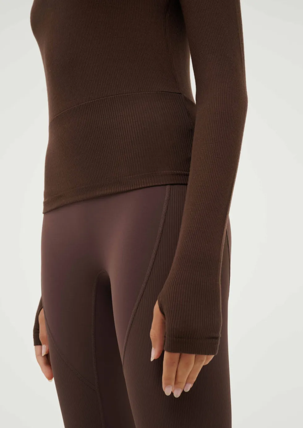 The Free Play 2.0 LS Rib Tee in Chestnut is a soft, stretchy rib fabrication making it an effortless all-day layer, with thumb hole detail in the sleeve. Suitable for low-intensity Pilates class and yoga workouts, the Free Play is designed to be worn all day, every day.