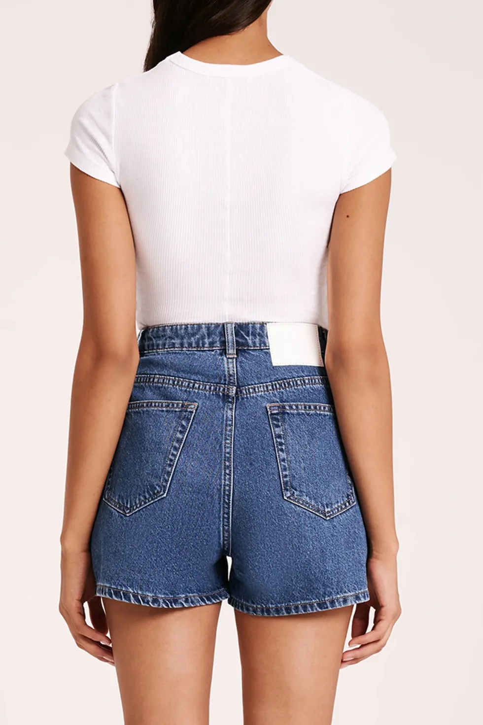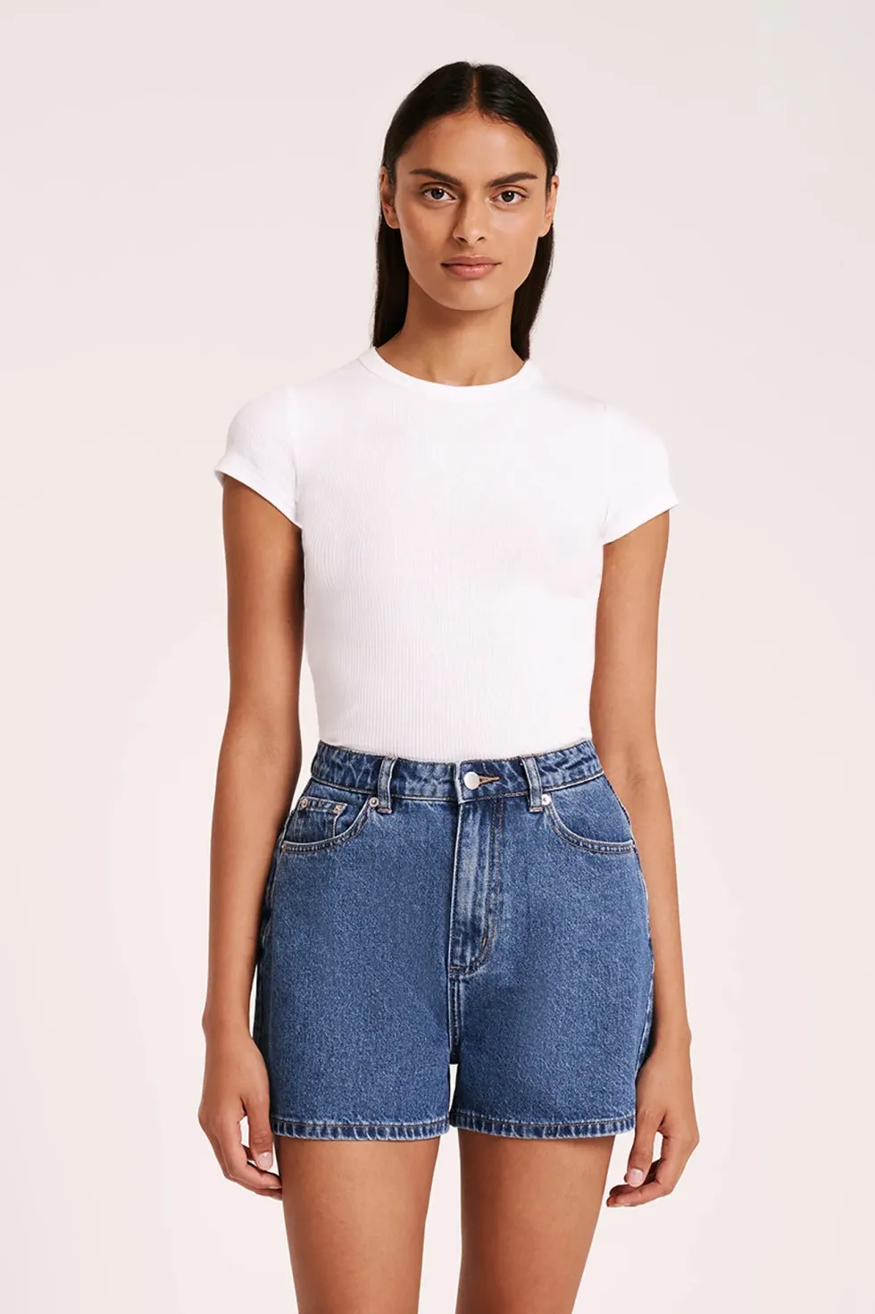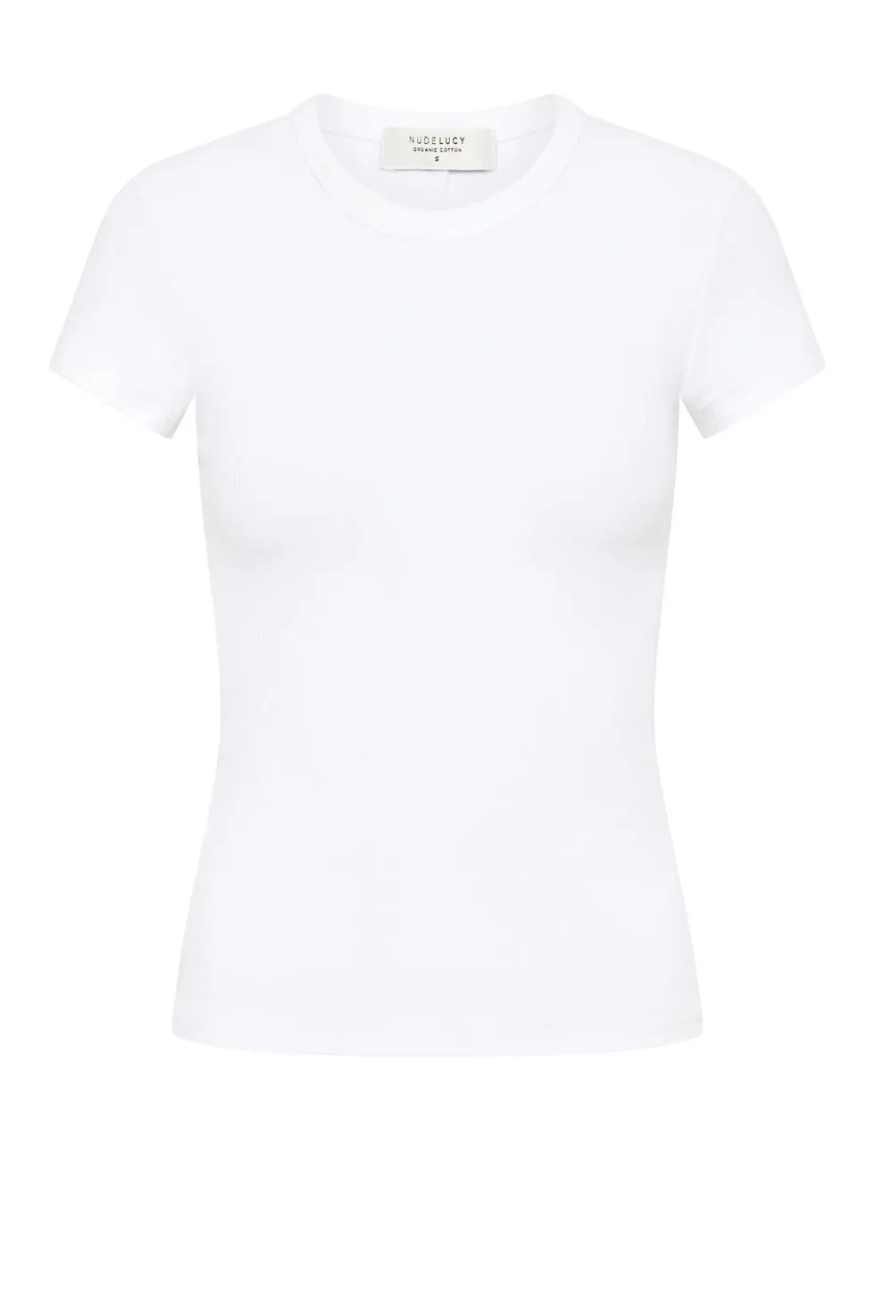 The Organic Rib SS Tee by Nude Lucy is a key piece to add to your basics wardrobe range. Made in organic cotton the silhouette is a flattering close fit. Features include a crew neck, short, fitted sleeves, and length finishing at the hip. This can be tucked in or worn over mid-rise bottoms