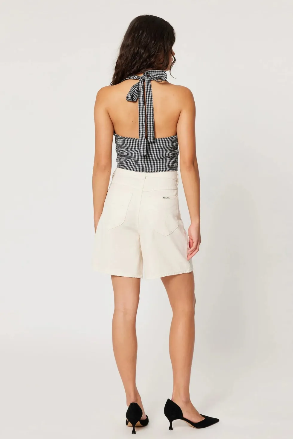 A high rise, mid-length denim short. Crafted in a soft hand feel lyocell / cotton blend.